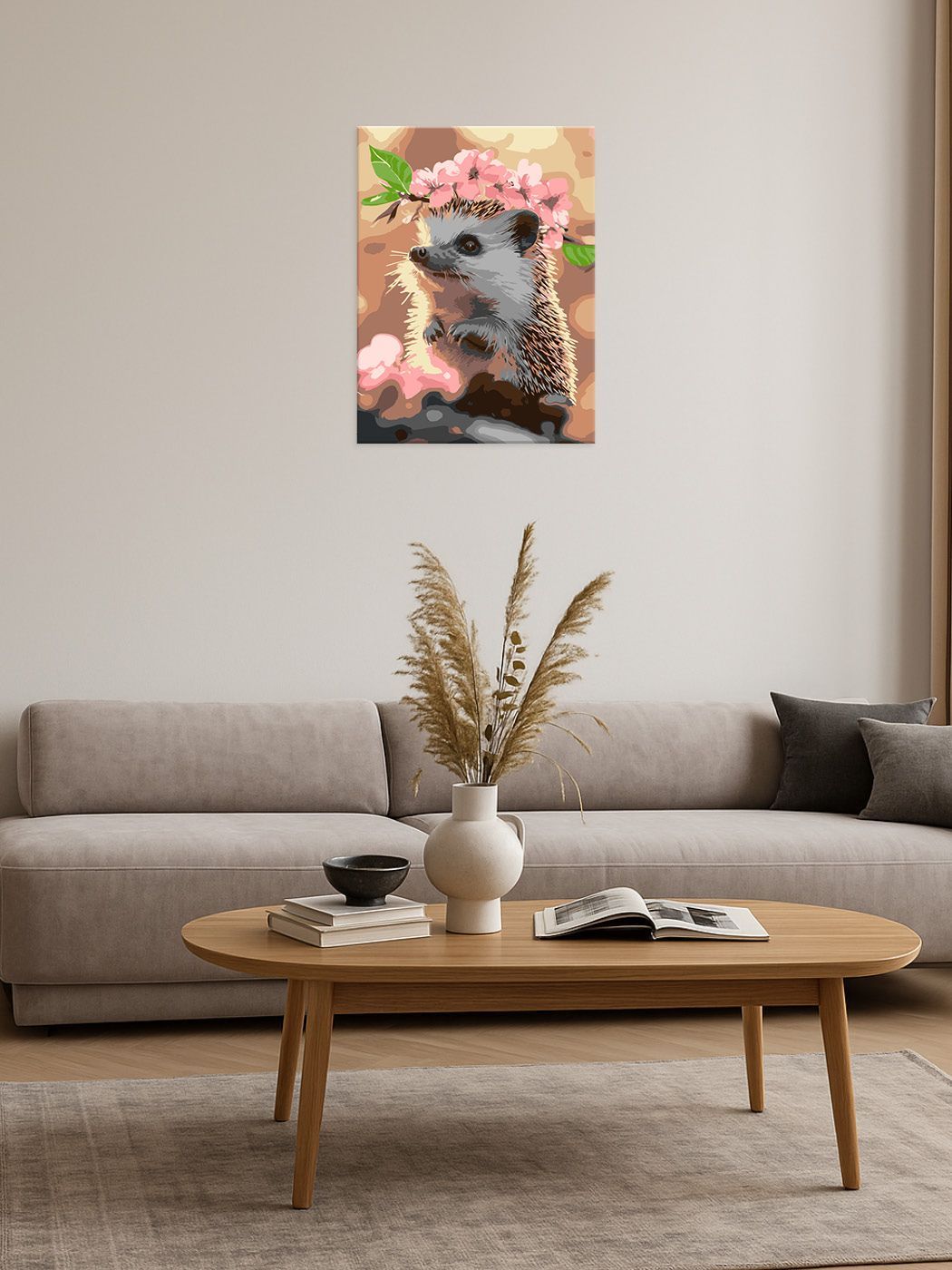 Această pictură pe numere 30×40 cm surprinde o scenă delicată și plină de farmec, în care un arici simpatic este înconjurat de flori de cireș în plină înflorire. Petalele fine, în nuanțe pastelate, creează un cadru romantic și primăvăratic, punând în valoare expresia blândă a micuțului personaj. Compoziția transmite prospețime, liniște și frumusețea naturii în cele mai simple momente.