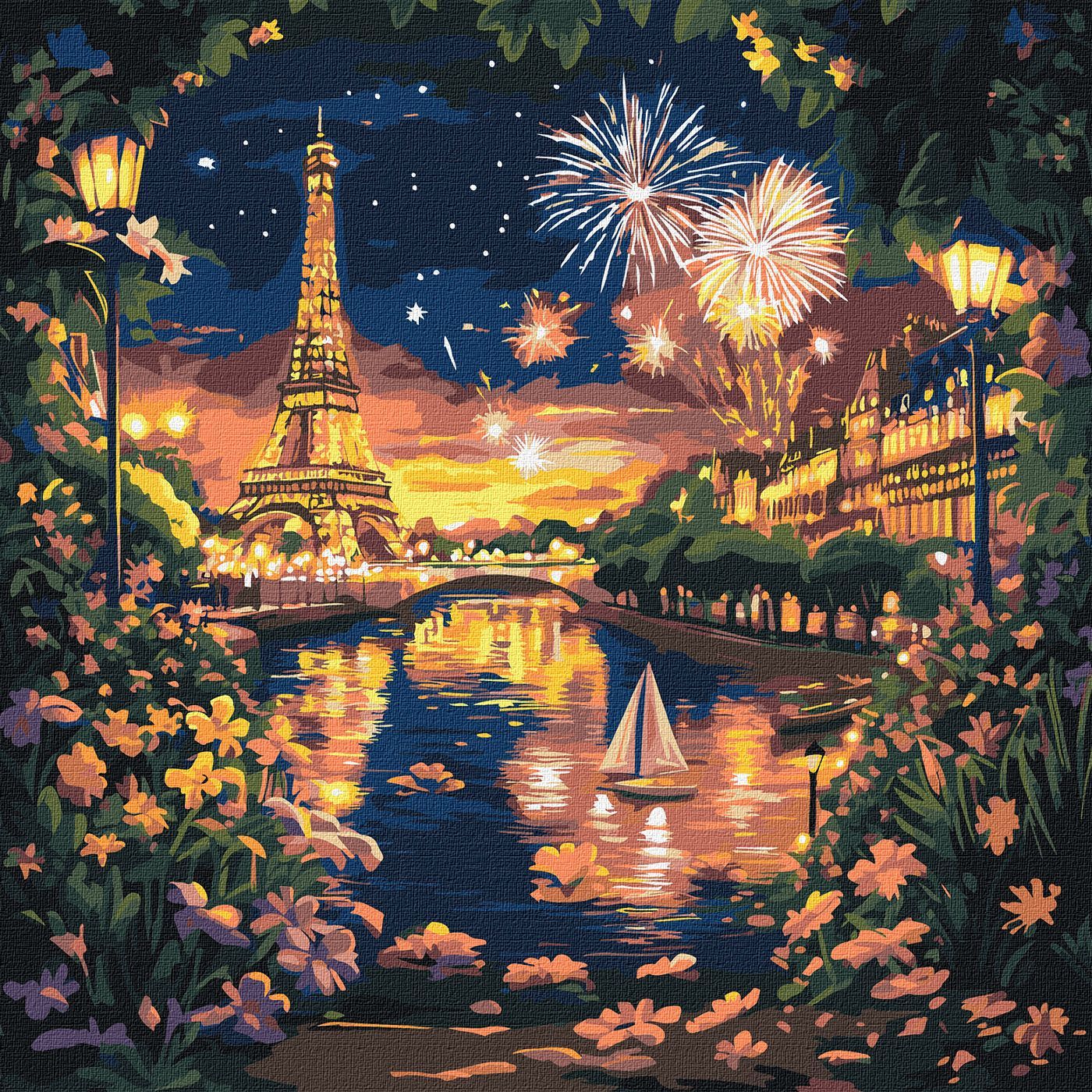 Artificii în Paris este o pictură pe numere spectaculoasă și plină de romantism, care surprinde turnul Eiffel luminat de focuri de artificii într-o seară magică. Cu dimensiunea de 40×40 cm, setul include pânză numerotată, pensule și culori acrilice vibrante. Potrivită pentru toate vârstele, această activitate artistică aduce eleganța pariziană și farmecul sărbătorilor în decorul casei tale.