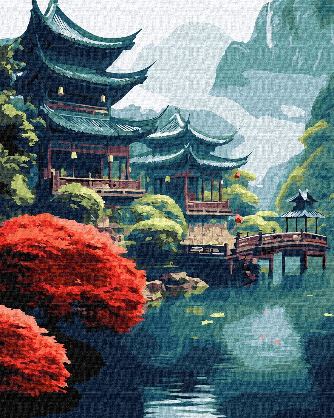 Dimineața în munți – peisaj japonez este o pictură pe numere delicată și echilibrată, inspirată din frumusețea naturii nipone. Scena surprinde munți acoperiți de ceață, un râu liniștit și vegetație specifică Japoniei, totul în lumina calmă a dimineții. Cu dimensiunea de 40×50 cm, setul conține pânză numerotată, pensule și culori acrilice în nuanțe pastelate și naturale. Ideală pentru toate vârstele, această activitate creativă aduce armonie, liniște și o notă de estetică japoneză în orice decor.