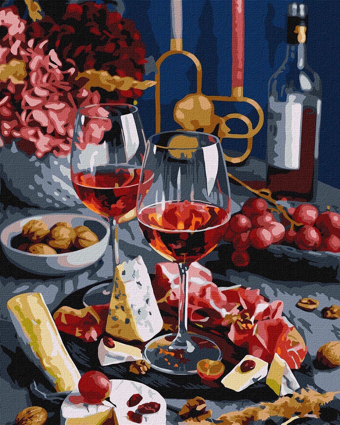 Plăceri rafinate este o pictură pe numere elegantă și apetisantă, ce surprinde o scenă culinară sofisticată cu vin, brânzeturi fine, nuci și decor de cină rafinată. Cu dimensiunea de 40×50 cm, setul conține pânză numerotată, pensule și culori acrilice bogate și armonioase. Potrivită pentru toate vârstele, această activitate creativă evocă momente de răsfăț și adaugă un strop de eleganță gourmet în orice spațiu.