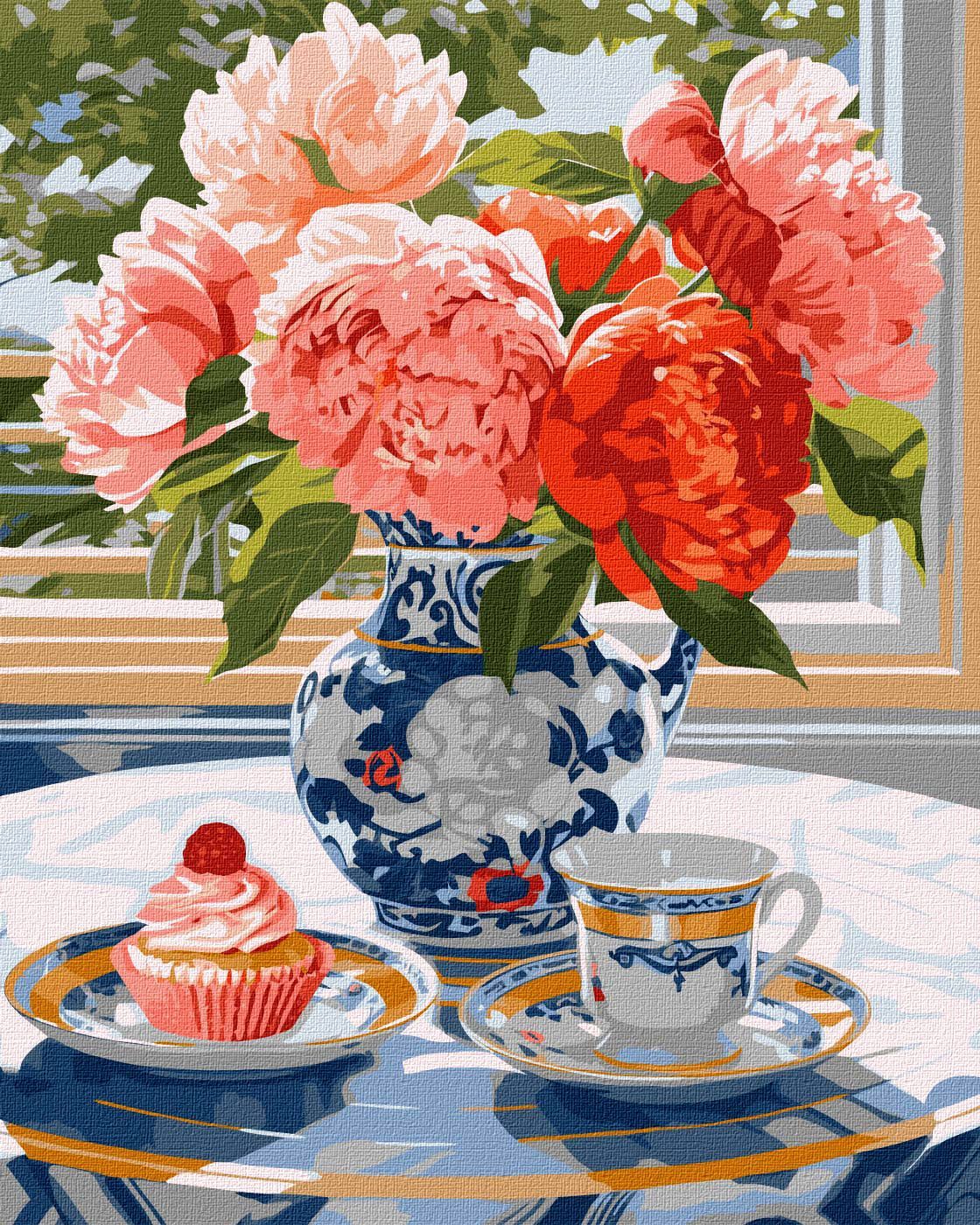 Surpriză dulce este o pictură pe numere delicată și rafinată, 40×50 cm, care surprinde un buchet de bujori într-o vază elegantă alături de o ceșcuță de ceai, într-o scenă intimă și plină de farmec. Culorile calde și detaliile fine creează o atmosferă de relaxare și răsfăț. Setul include pânză numerotată pe șasiu, pensule și culori acrilice de calitate, perfect pentru momente creative plăcute și un cadou inspirat.